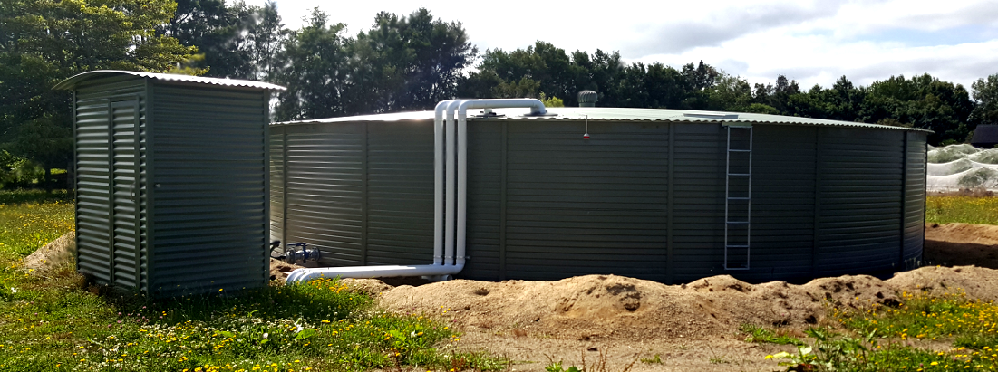 All our tanks have a 100mm inlet and outlet pipe with a tee inside the tank at the bottom. An overflow pipe is then raised to the top and a screw cap is placed on the other end of the tee. The cap is drilled to an appropriate hole size.